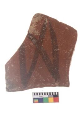 | Description / विवरण | Specimen of potsherd with black decorative geometric painting . |