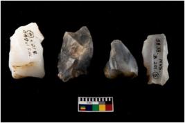 | Description / विवरण | Specimen of a fluted cores with several broad fluted marks indicating the detached blades from it. Some of them are tapering at one end. |