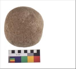 | Description / विवरण | Specimen of a sling ball with rough surface. |