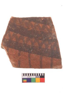 | Description / विवरण | Specimen of potsherd with black decorative geometric Set of two zigzag bands painting, Type Black on Red Ware . |