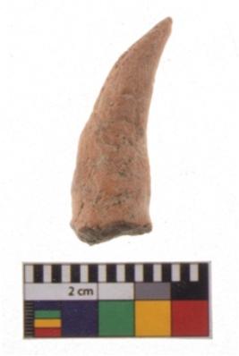 | Description / विवरण | A fragment of an handmade horn of a bull figurine made with fine clay. It is red ware, well fired and smooth in texture. |