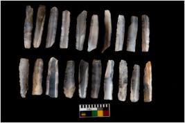 | Description / विवरण | There are n-20 blades with retouched sides. Out of them 17 are made up of Chalcedony and 3 are made up of Agate. Some of them are blunted back blades, crescent and truncated blades. |
