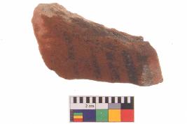 | Description / विवरण | Specimen of potsherd with black decorative painting, Type Black on Red Ware . |