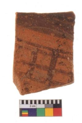 | Description / विवरण | Specimen of potsherd with decorative geometric painting. Type Black on Red Ware . |