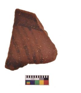 | Description / विवरण | Specimen of black on red ware with decorative geometric Outcurved lines painting. |