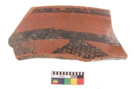 | Description / विवरण | Specimen of potsherd with black decorative geometric painting. |