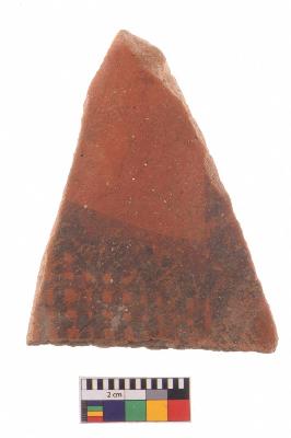 | Description / विवरण | Specimen of potsherd with black decorative geometric Net Pattern painting, Type Black on Red Ware . |