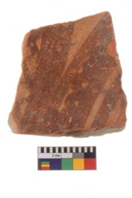 | Description / विवरण | Specimen of potsherd with decorative geometric painting. Type Black on Red Ware . |