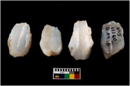 | Description / विवरण | Specimen of a fluted cores with few broad fluted marks indicating the detached blades from it. Some of them are tapering at one end. |