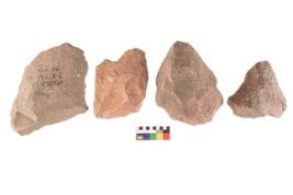 | Description / विवरण | Specimen of flake tool with prominent flaking marks. They are made up of a short flakes with sides trimmed and some are rectangular in shape. |