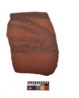 | Description / विवरण | Specimen of black on red ware with decorative geometric Its decorated with two horizontal bands with sets of triple arches painting. |