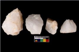 | Description / विवरण | Specimen of a cores with several broad fluted marks. Some of them have sharp edges. |