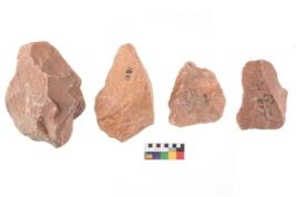| Description / विवरण | Specimen of flake tool with prominent flaking marks. They are made up of a short flakes with sides trimmed and some are rectangular in shape. |