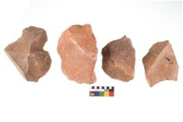 | Description / विवरण | Specimen of flake tool with prominent flaking marks. They are made up of a short flakes with sides trimmed and some are rectangular in shape. |