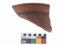 | Description / विवरण | Specimen of potsherd with black decorative geometric painting . |