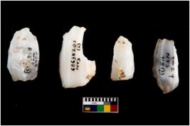 | Description / विवरण | Specimen of a fluted cores with few broad fluted marks indicating the detached blades from it. Some of them are tapering at one end. |