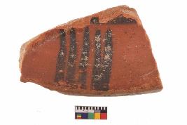 | Description / विवरण | Specimen of potsherd with black decorative Linear painting, Type Black on Red Ware . |
