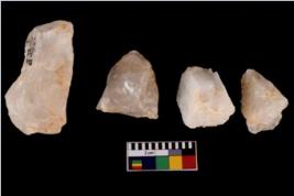 | Description / विवरण | Specimen of a cores with several broad fluted marks. Some of them have sharp edges. |