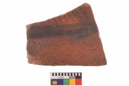 | Description / विवरण | Specimen of potsherd with black decorative geometric Linear painting, Type Black on Red Ware . |