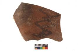 | Description / विवरण | Specimen of potsherd with decorative geometric painting. Type Black on Red Ware . |