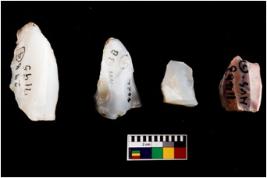 | Description / विवरण | Specimen of a fluted cores with few broad fluted marks indicating the detached blades from it. Some of them are tapering at one end. |
