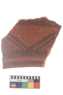 | Description / विवरण | Specimen of potsherd with black decorative geometric painting . |