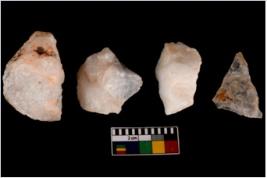 | Description / विवरण | Specimen of a cores with several broad fluted marks. Some of them have sharp edges. |