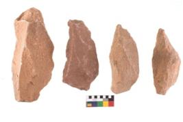 | Description / विवरण | Specimen of flake tool with prominent flaking marks. They are made up of a short flakes with sides trimmed and some are rectangular in shape. |