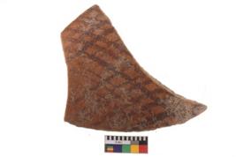 | Description / विवरण | Specimen of potsherd with decorative geometric painting. Type Black on Red Ware . |