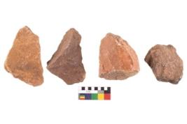 | Description / विवरण | Specimen of flake tool with prominent flaking marks. They are made up of a short flakes with sides trimmed and some are rectangular in shape. |