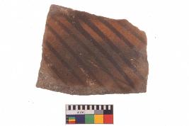 | Description / विवरण | Specimen of potsherd with black decorative geometric Linear painting, Type Black on Red Ware . |