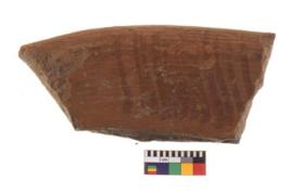 | Description / विवरण | Specimen of potsherd with decorative geometric painting. Type Black on Red Ware . |