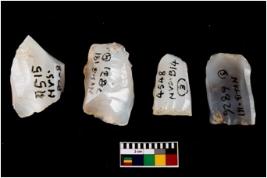 | Description / विवरण | Specimen of a fluted cores with few broad fluted marks indicating the detached blades from it. Some of them are tapering at one end. |