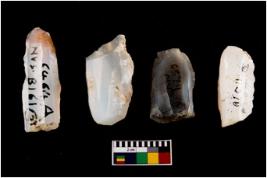 | Description / विवरण | Specimen of a fluted cores with few broad fluted marks indicating the detached blades from it. Some of them are tapering at one end. |