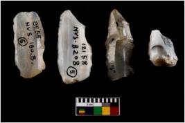 | Description / विवरण | Specimen of a fluted cores with few broad fluted marks indicating the detached blades from it. Some of them are tapering at one end. |