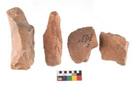 | Description / विवरण | Specimen of flake tools with prominent flaking marks. |