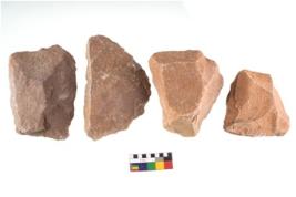 | Description / विवरण | Specimen of flake tools with prominent flaking marks. |