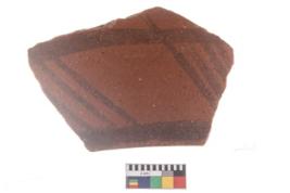 | Description / विवरण | Specimen of potsherd with black decorative geometric Net Pattern painting. |