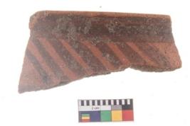 | Description / विवरण | Specimen of potsherd with black decorative geometric painting . |