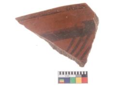 | Description / विवरण | Specimen of potsherd with black decorative geometric painting . |