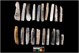 | Description / विवरण | There are n-20 blades with retouched sides. Out of them 18 are made up of Chalcedony and 2 are made up of Chert. Some of them are blunted back blades, crescent and truncated blades. |