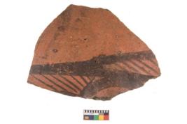 | Description / विवरण | Specimen of potsherd with black decorative geometric painting. |