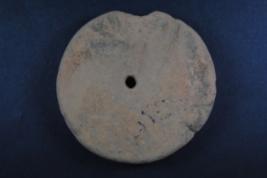 | Description / विवरण | It s a terracotta wheel and done in round shape with well fired. It s both sides are raised and a fine hole throught it. There are some cut marks on it surface and margin is broken. The object losing its original colour. |