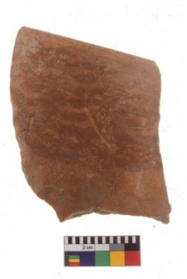 | Description / विवरण | Specimen of Red on red ware potsherd with having red decorative geometric painting. |