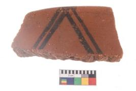 | Description / विवरण | Specimen of potsherd with black decorative geometric painting. |