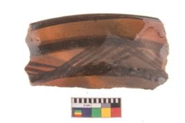 | Description / विवरण | Specimen of potsherd with black decorative geometric painting. |