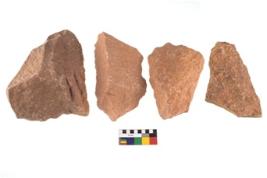 | Description / विवरण | Specimen of flake tools with prominent flaking marks. |