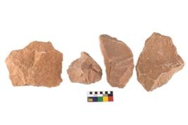 | Description / विवरण | Specimen of flake tools with prominent flaking marks. |