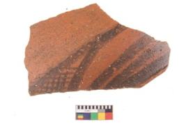 | Description / विवरण | Specimen of potsherd with black decorative geometric painting. |