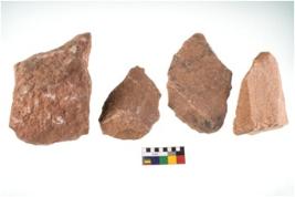 | Description / विवरण | Specimen of flake tools with prominent flaking marks. |